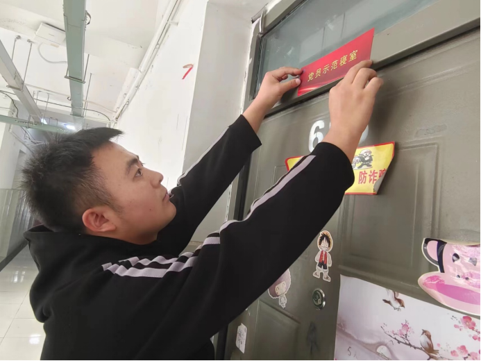 随后,文化旅游学院党总支书记田娅在学院辅导员老师的陪同下前往文化旅游学院学生党支部“党员示范寝室”并为他们挂牌,通过此类“党建进公寓”活动,提升学生党员在学生宿舍中的示范、引领作用,让“党员自觉意识”、“服务群众意识”在学生宿舍中萌发,切实增强学生党员、积极分子的责任感、使命感,进一步营造学生宿舍中的“正能量”环境,让学生公寓更好地发挥学生学习“第二阵地”的积极作用。