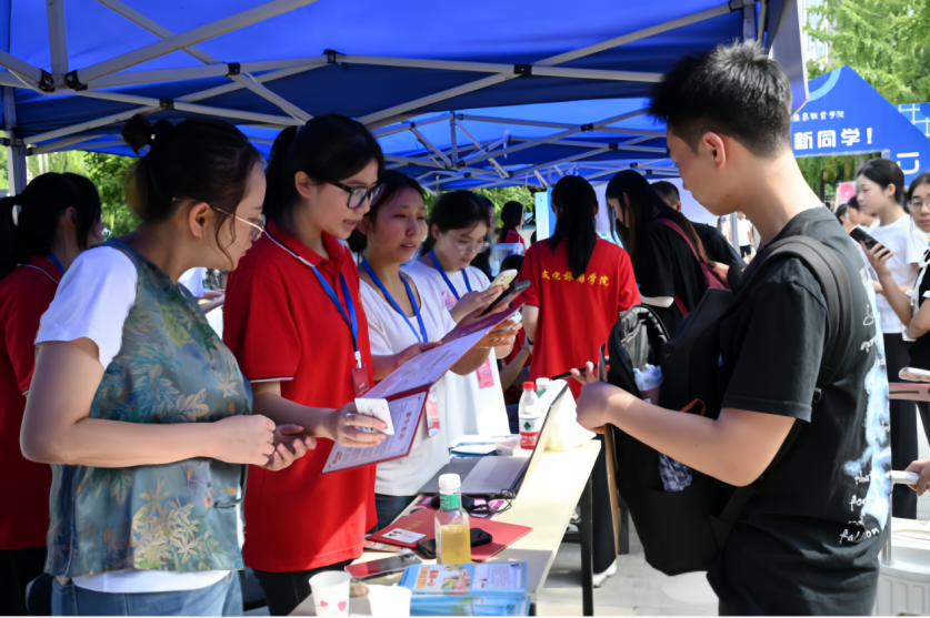 文旅学院分团委学生会的志愿者们更是迎新工作中的“主力军”。他们身着统一院服,忙碌在校园的各个角落:有的在入口处引导新生前往报到点,有的主动帮助搬运行李,还有的耐心介绍校园设施和报到流程,用热情和行动为新生搭建起一座便捷、温暖的服务之桥。